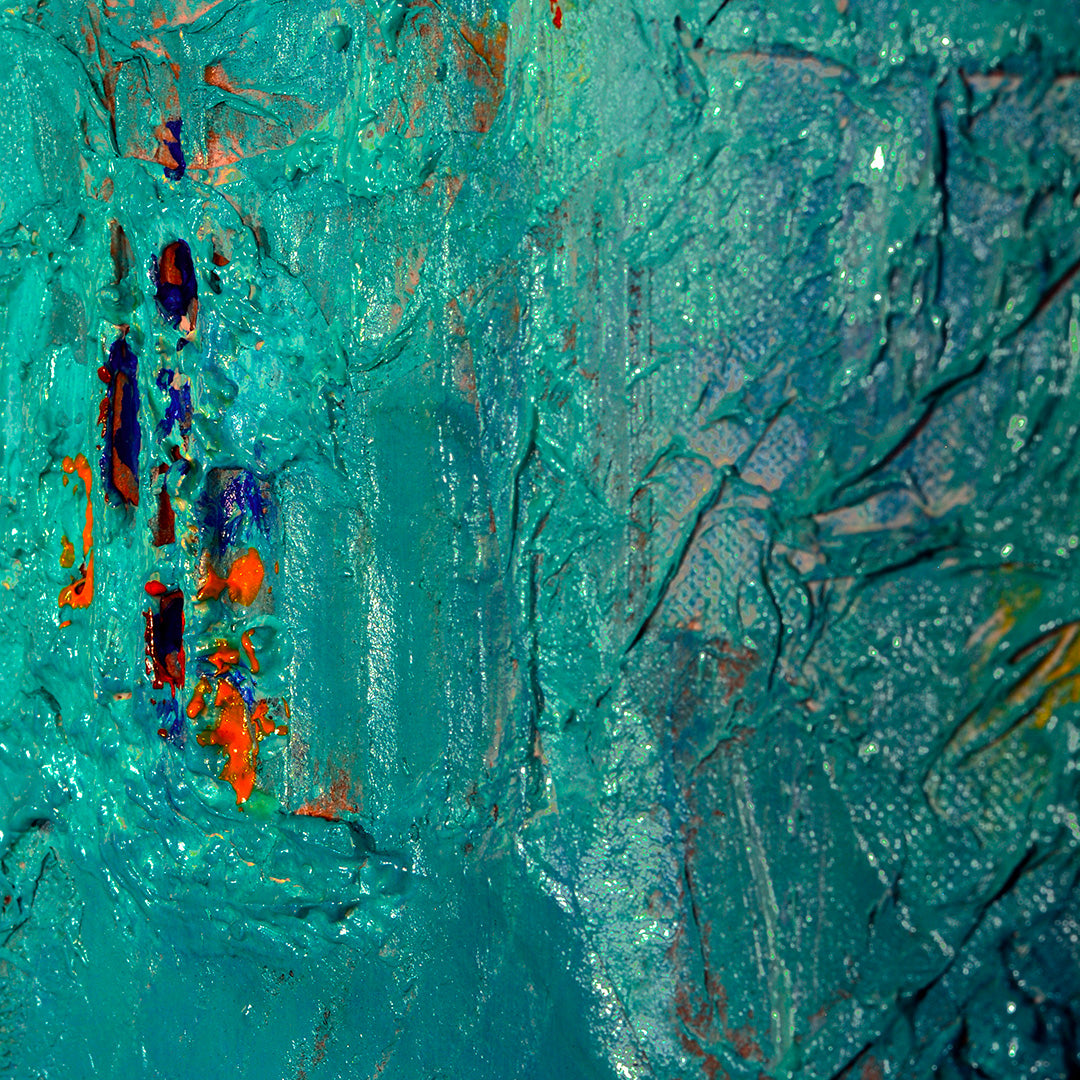 Questa opera d'arte invita spettatori in viaggio in profondità e silenzio , evocando la calma del naturale e del misterioso spazi . I toni del verde smeraldo si fondono perfettamente con accenni di blu intenso, giallo e rosso, creando un gioco di contrasti Quello suggeriscono la presenza di nascosto , vibrante correnti . La trama superficie esalta la tridimensionalità effetto , aggiungendo un senso di movimento e vitalità . Ideale per ambienti moderni o minimalisti interni , questo dipinto diventa il punto focale di uno spazio , portando profondità e raffinatezza .