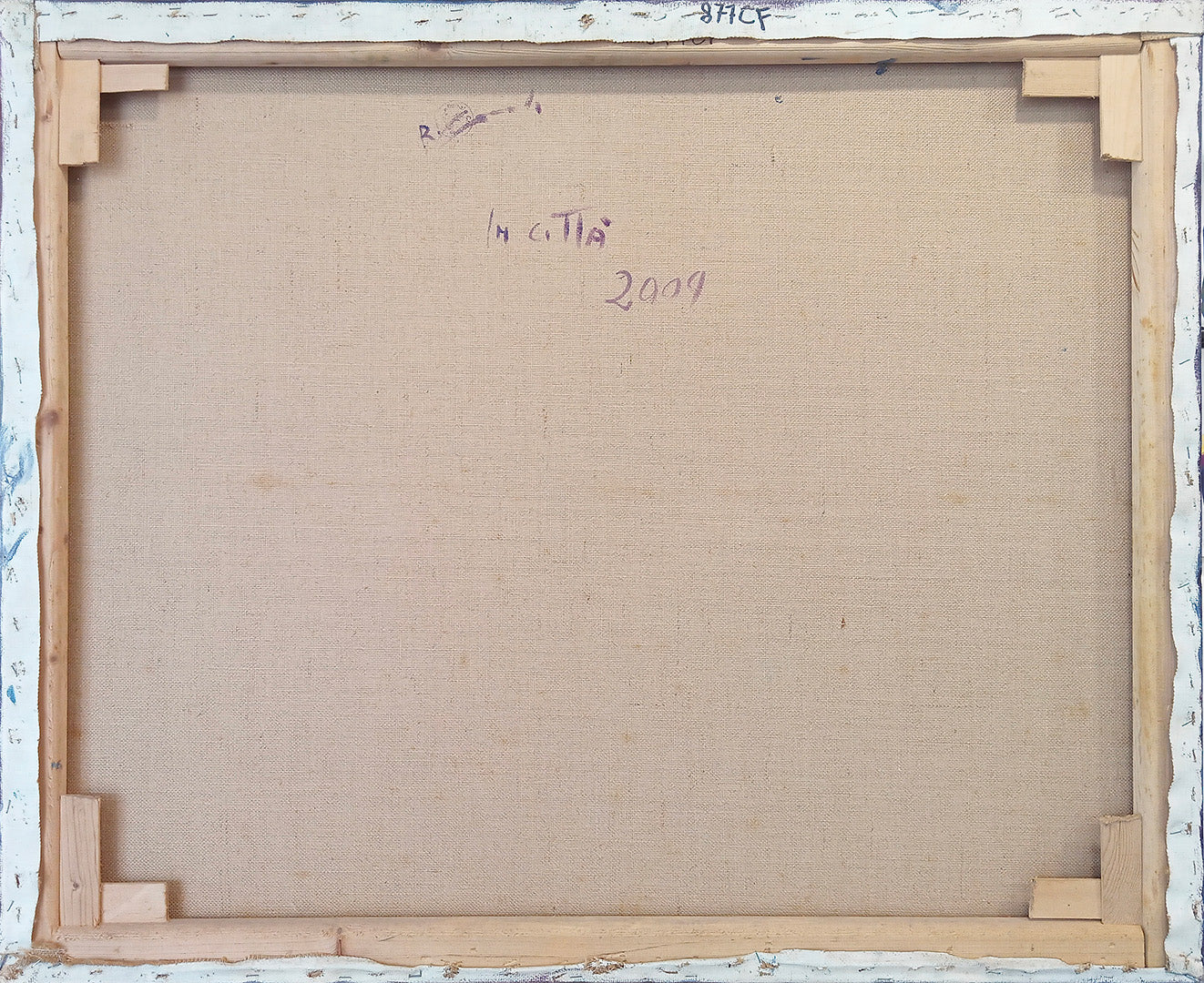 The painting is offered unframed to preserve its raw artistic appeal. The frame shown in the images is an example. Custom framing is available upon request; please contact us for details.