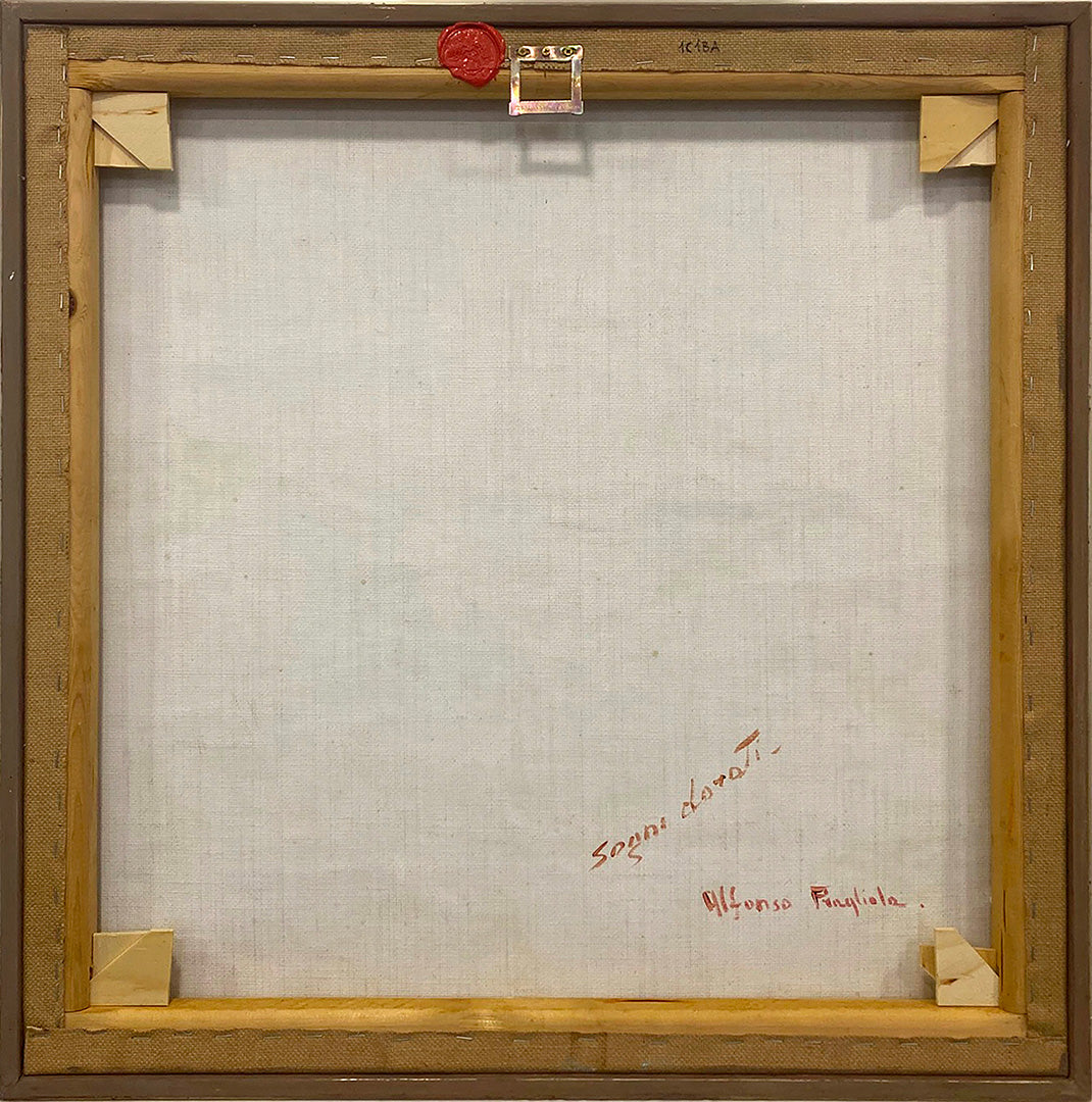 Alfonso Pragliola’s Sogni Dorati is a captivating work of art that immerses the viewer in a harmonious blend of abstract and natural elements. Measuring 70 × 70 cm, this painting exemplifies Pragliola’s signature style and showcases his remarkable ability to depict nature with a contemporary touch. Created on a coarse jute canvas, the raw texture of the fabric becomes an integral part of the composition, while Pragliola skillfully uses oils, acrylics, and wax pastels to build depth and movement.